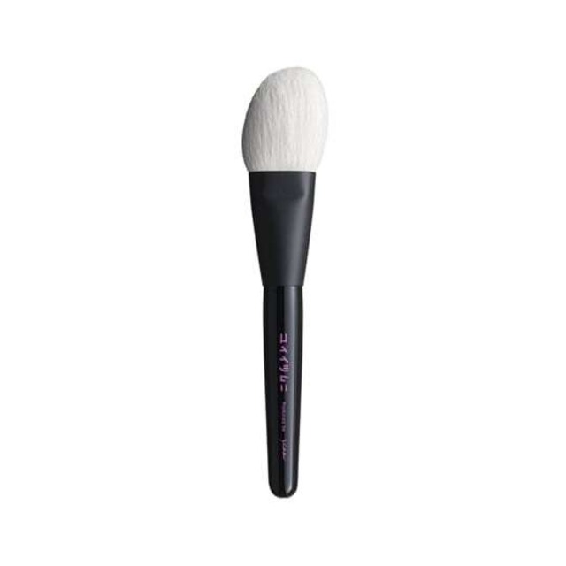 YOSHIKI BLACK パウダーブラシ – 熊野筆晃祐堂 筆マスターYoshiki – 熊野筆の伝統技術と、メイクを知り尽くしたプロの感性が出会って生まれた、晃祐堂 最高級ライン 『ユイイツムニ』 最大の特徴は、毛先の形。毛先をカットせず天然毛を使用していること。毛の自然な形状を活かすことで、驚くほどなめらかな肌あたりと、優れた粉含みを実現しています。 パウダーはもちろんチークやハイライトにも応用可能。使い方次第で表現が広がる柔らかな万能ブラシです。 Yoshiki Black さまざまな形状を揃えた「Yoshiki Black」シリーズは、メイクアップのあらゆるシーンでプロフェッショナルな仕上がりを実現するためにデザインしました。 高品質な毛材を使用し、肌に優しく、均一でなめらかな仕上がりを叶えるとともに、メイクの仕上がりを格上げします。 形 状 斜め 毛 質 上質細光峰 出 穂 40/25mm 全 長 170mm