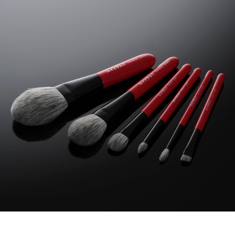 毛先は一切カットせず、上質な細光峰と黒粗光峰を職人の手で丁寧に仕上げた化粧筆。